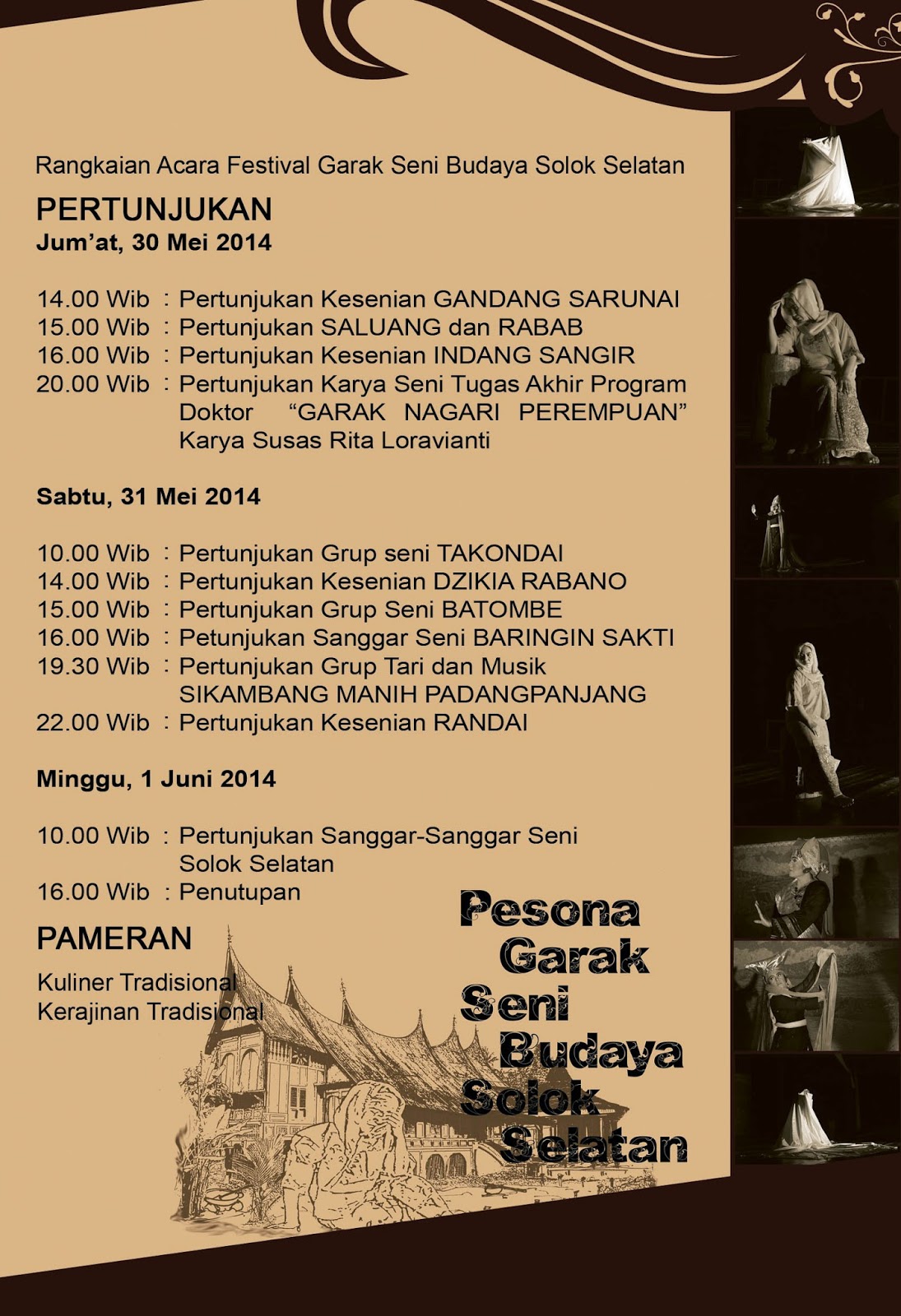 GNP_Muara Labuh_Pertunjukan karya seni Garak Nagari Perempuan karya Susas Rita Loravianti tampil di Pasir Talang Muara Labuh Solok Selatan Sumatera Barat, Jumat 30 Mei 2014. Pertunjukan tersebut merupakan karya tugas akhir program Doktor Pascasarjana Institut Seni Indonesia (ISI) Surakarta. Garak Nagari Perempuan diproduksi oleh Sanggar Sikambang Manih bekerja sama dengan ISI Surakarta, ISI Padangpanjang dan pemerintah Solok Selatan.